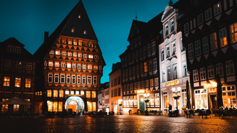 Rebuilt market square with one of the largest half-timbered houses in Europe.